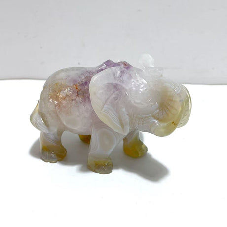 Unique Amethyst Mixed Geode Druzy Agate Elephant Animal Carving #A17