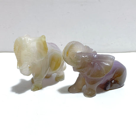 2 Pieces Amethyst Mixed Geode Druzy Agate Elephant Animal Carving #A21