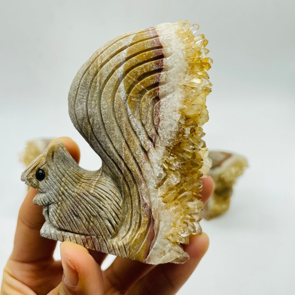 4 Pieces Cute Tangerine Orange Quartz Cluster Squirrel Carving | Europe