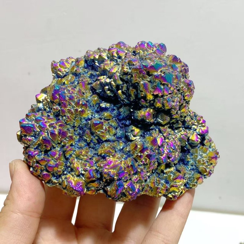 We sell our aura clear quartz cluster in lots that are 10pcs, you will get the same basket of stones as in the photo and video.