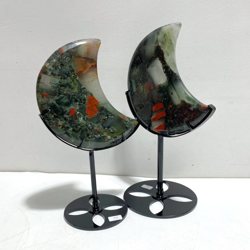 We sell our Africa blood stone moon with stand in lots that are 5pcs, you will get the same of stones as in the photo and video.