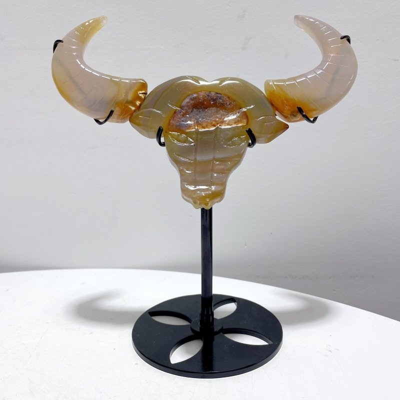 Note: We sell our geode druzy agate ox head carving in lots that are 3pcs, you will get the same of stones as in the photo and video.