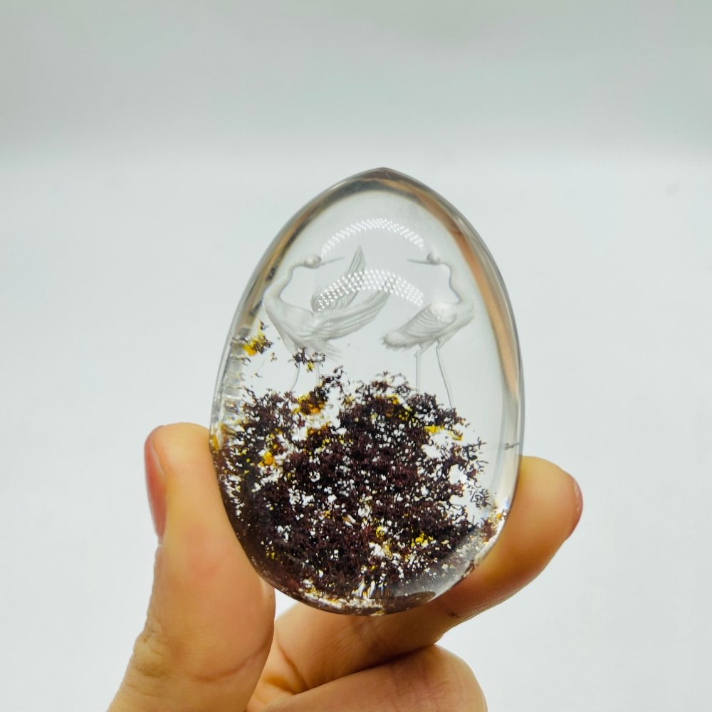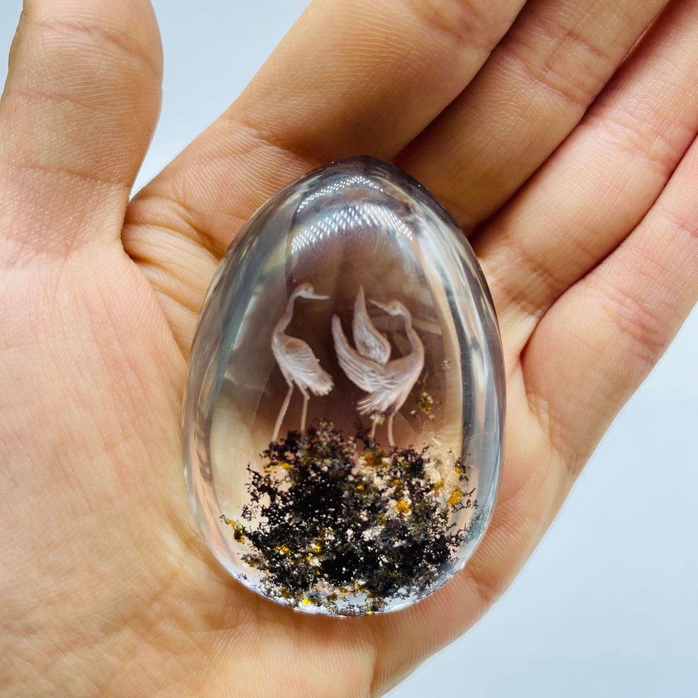 Crane Stork Couple Very Clear Garden Quartz Interior Engraving Carving | Europe