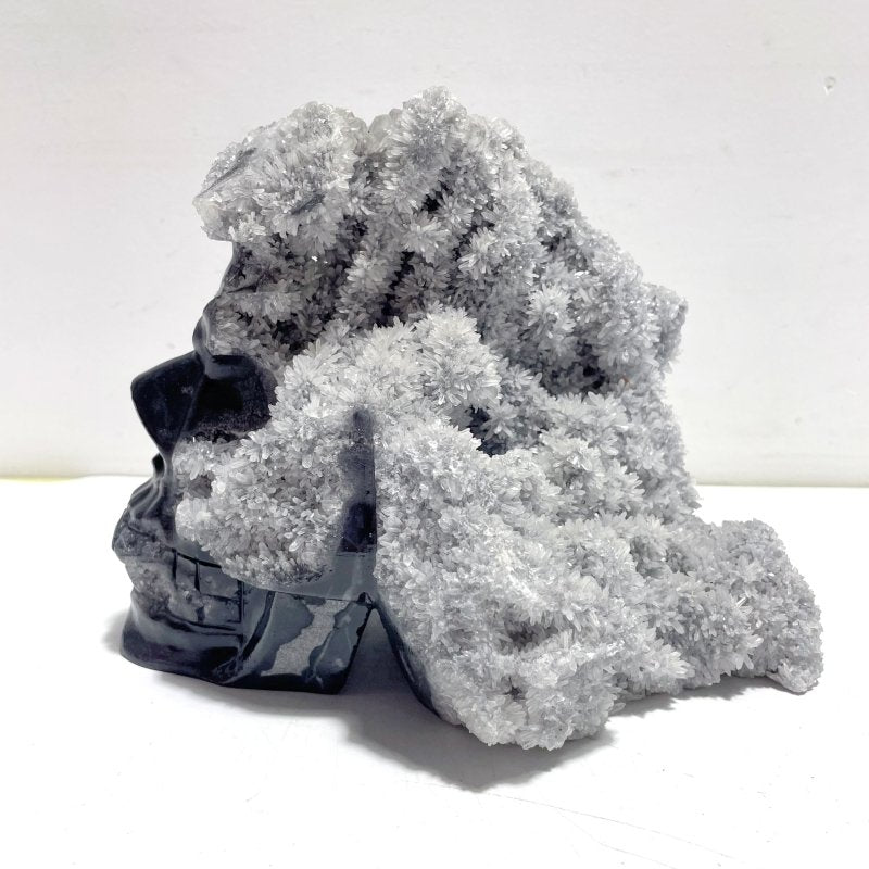 3 Pieces Large Black Clear Quartz Cluster Skull Carving | Europe