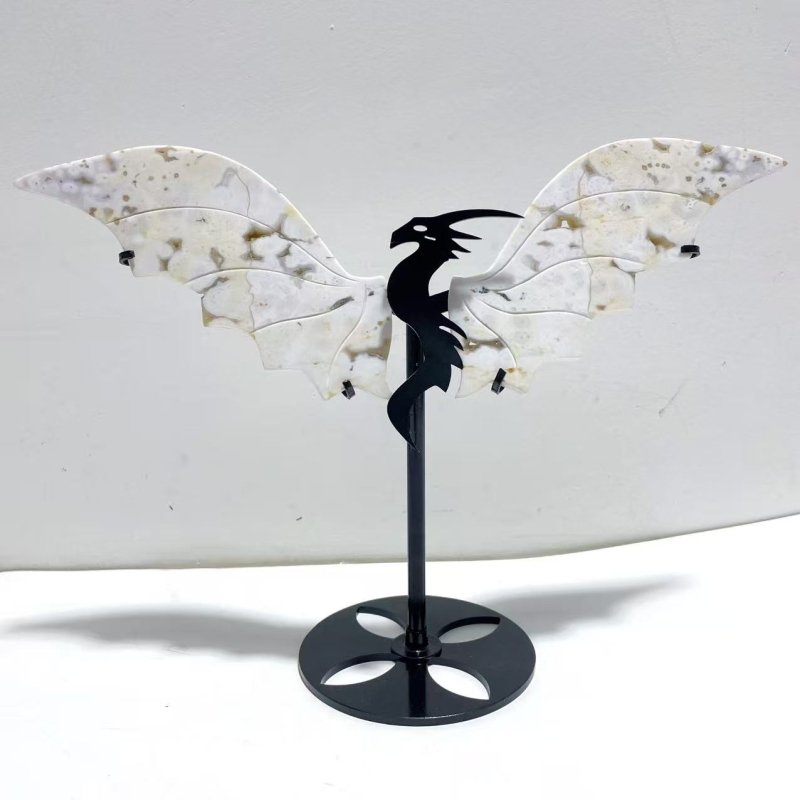 2 Pairs 8th Vein Ocean Jasper Flying Dragon Wing With Stand | Europe