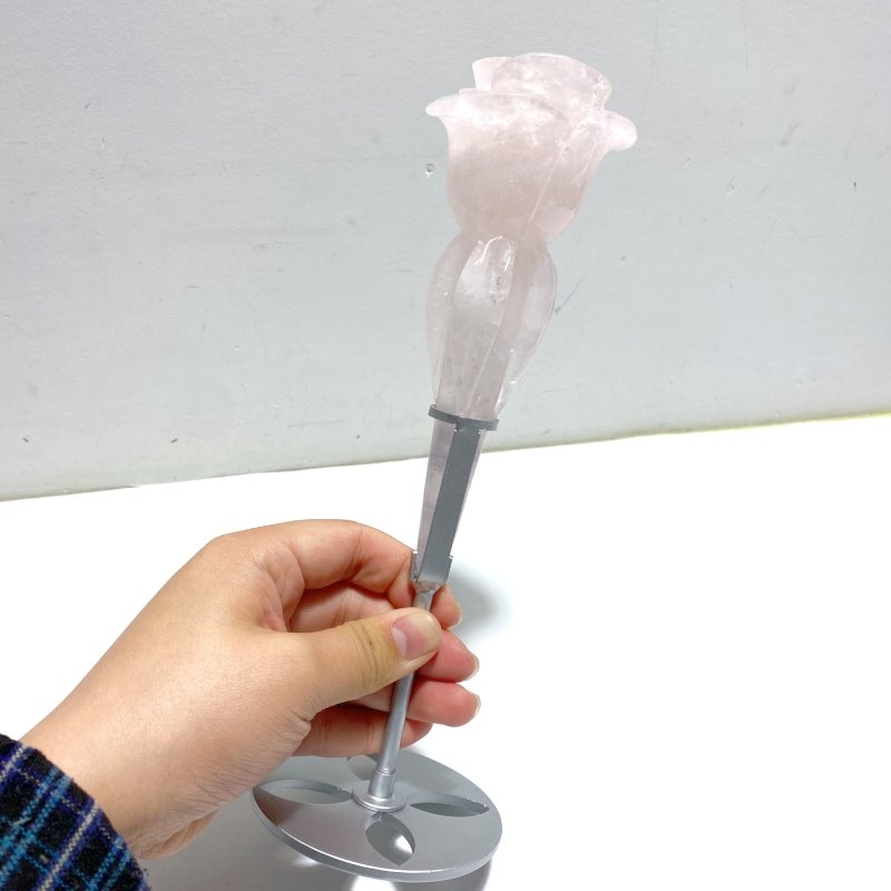 6 Pieces Rose Quartz Chevron Amethyst Flower Carving With Stand | Europe