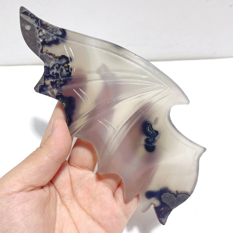 Unique Volcano Agate Demon And Angel Wing Carving With Stand (UV-Reactive) | Europe