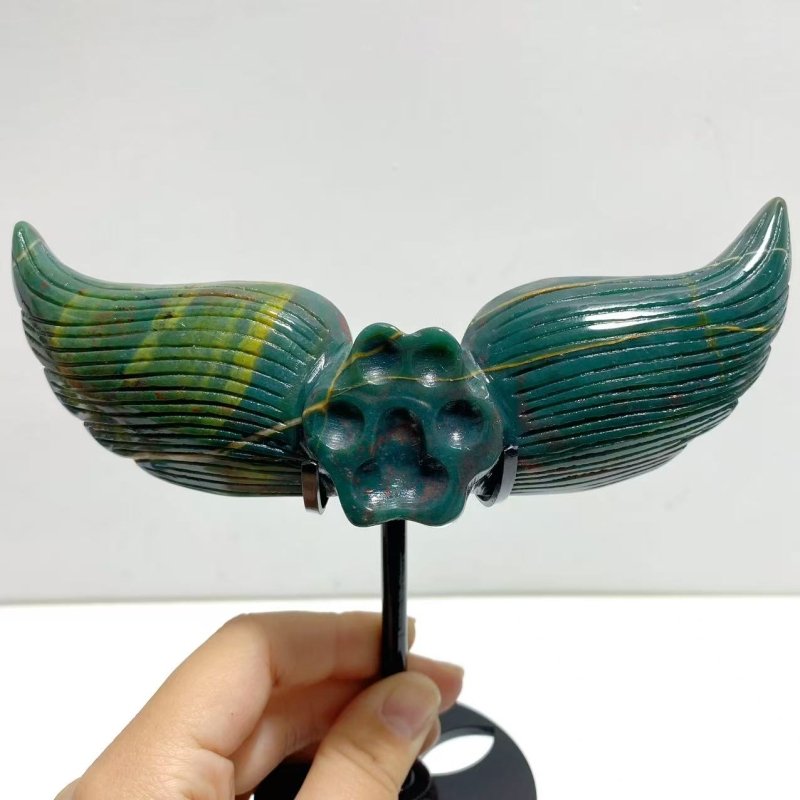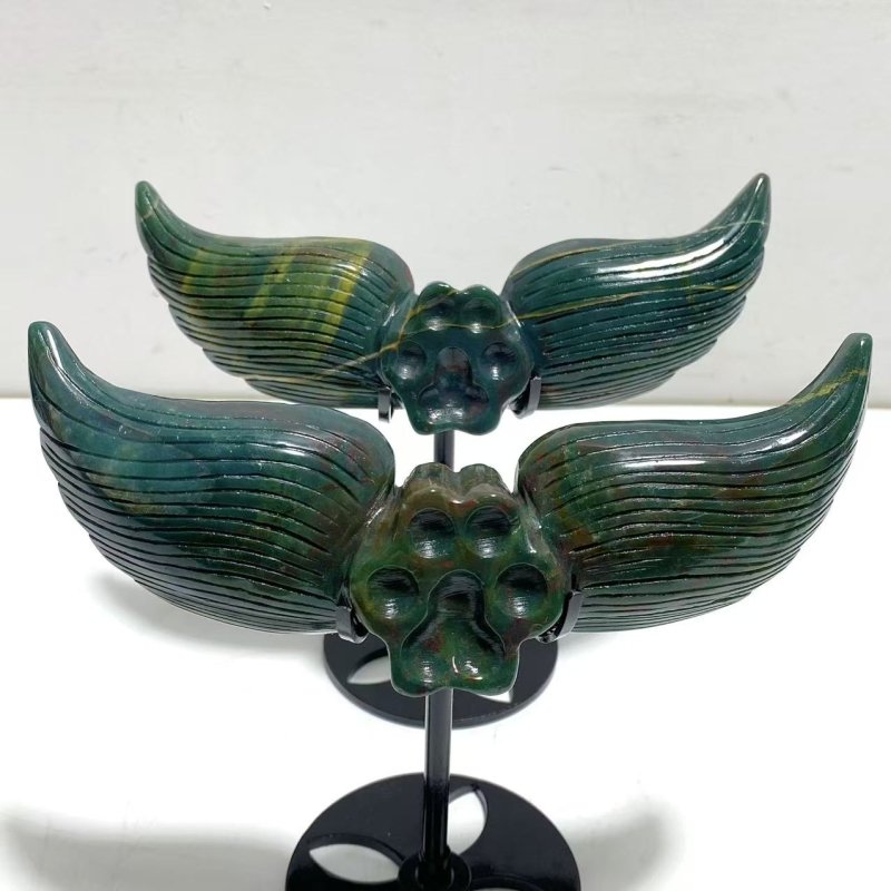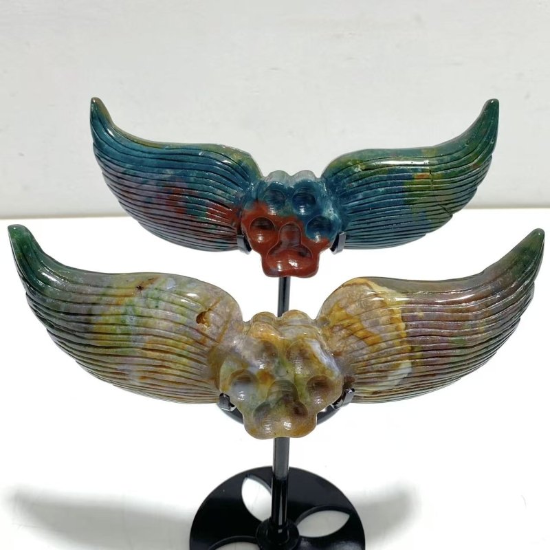 6 Pairs Unique Ocean Jasper Cat Paw Wing Carving With Stand | Europe